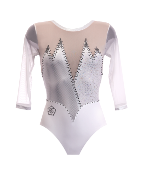 81,97 €ROCK WHITE. Body con maniche a tre quarti in lycra, lurex hologram e tulle elasticizzato. Il design con scollatura a cuore e taglio in vita allunga e sottolinea la parte alta del corpo donando eleganza e femminilità ed è contornato da file di strass che conferiscono luminosità e preziosità al capo.