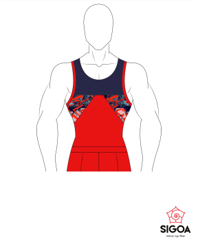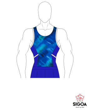 SUMMIT. Body dal design strong e deciso in lycra con fantasia astratta, taglio che allunga il busto e inserto in rete tecnica.