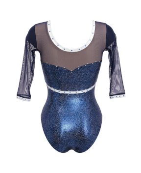 MOON. Body con maniche tre quarti in lurex hologram e maniche in tulle elasticizzato. Il design con scollatura a cuore e l'inserto sottolineano la vita evidenziando la parte alta del corpo. Il body è impreziosito da file di strass che conferiscono una raffinata luminosità.