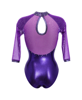 ICONIC PURPLE. Body con maniche raglan a tre quarti in lurex, lurex hologram e tulle glitterato. Il design simmetrico centrale evidenzia la parte alta del corpo donando eleganza e femminilità ed è contornato da file di strass che conferiscono luminosità e preziosità al capo.