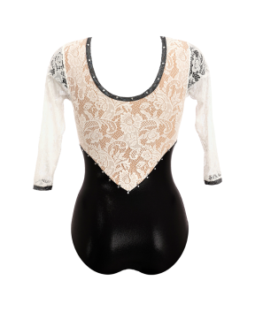 ATLAS. Body della Collezione Lace a girocollo con maniche a tre quarti. Realizzato in lurex two tone e hologram con scollatura a cuore e pizzo impreziositi da strass Preciosa crystal e black diamond. Body super elegante e femminile per essere al top in campo gara.