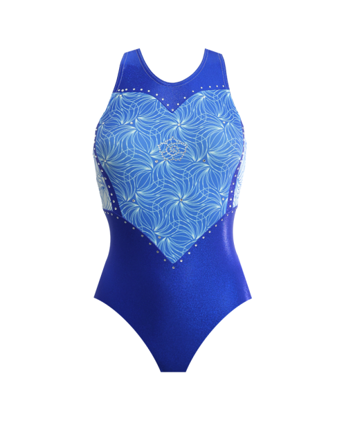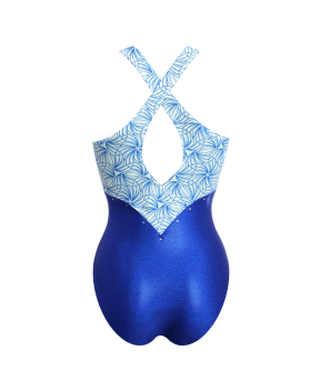 APSIDE. Body smanicato della squadra italiana. Il capo è realizzato in lurex hologram con inserti in lycra fantasia. Il dietro del body è caratterizzato dalla schiena incrociata in lycra fantasia mentre il taglio sottolinea la vita ed è impreziosito da file di strass crystal che donano luminosità a brillantezza.