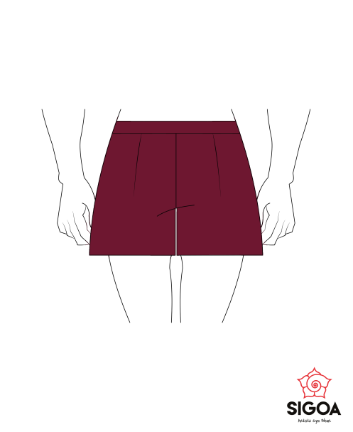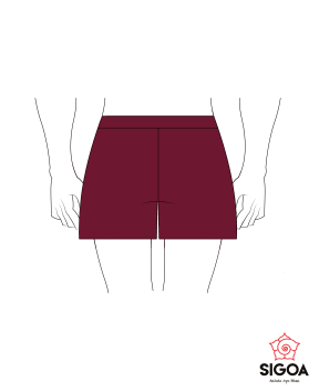 Pantaloncino con cuciture sulla parte davanti, in tessuto lycra di colore bordò.