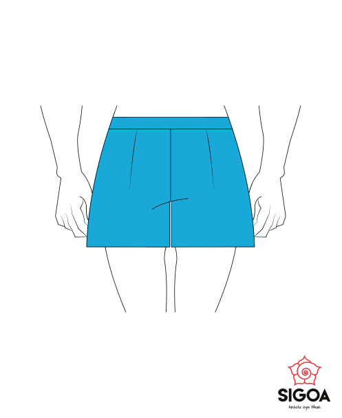 Pantaloncino con cuciture sulla parte davanti, in tessuto lycra di colore turchese.