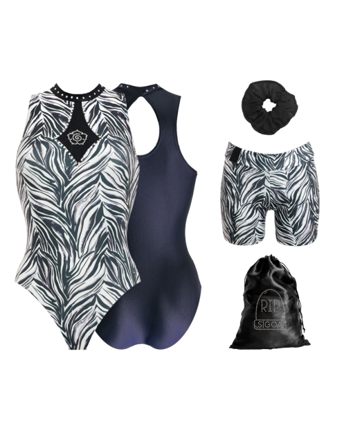 BUNDLE VESPERA. Il body Vespera con collo alto nasce per chi vive il movimento come espressione di stile. La sua stampa zebrata, audace e sofisticata, richiama l’energia selvaggia della notte, trasformando ogni allenamento in un gesto di carattere. Perfetto per chi vuole distinguersi anche in palestra, Vespera unisce grinta ed eleganza in un equilibrio impeccabile — perché la forza può essere anche bellezza.