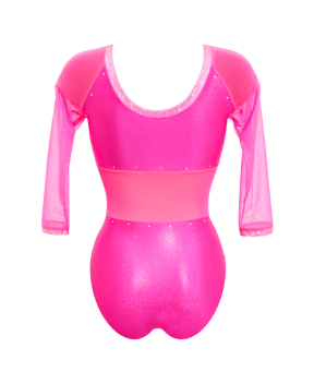 BEVERLY FUCHSIA FLUO. Body con maniche a tre quarti raglan in lurex hologram e tulle elasticizzato. Il design simmetrico con scollatura a cuore centrale e il ricamo allungano e sottolineano la parte alta del corpo donando eleganza e femminilità ed è contornato da file di strass che conferiscono luminosità e preziosità al capo.