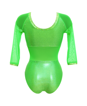 BEVERLY FLUO GREEN. Body con maniche a tre quarti raglan in lurex hologram e tulle elasticizzato. Il design simmetrico con scollatura a cuore centrale e il ricamo allungano e sottolineano la parte alta del corpo donando eleganza e femminilità ed è contornato da file di strass che conferiscono luminosità e preziosità al capo.